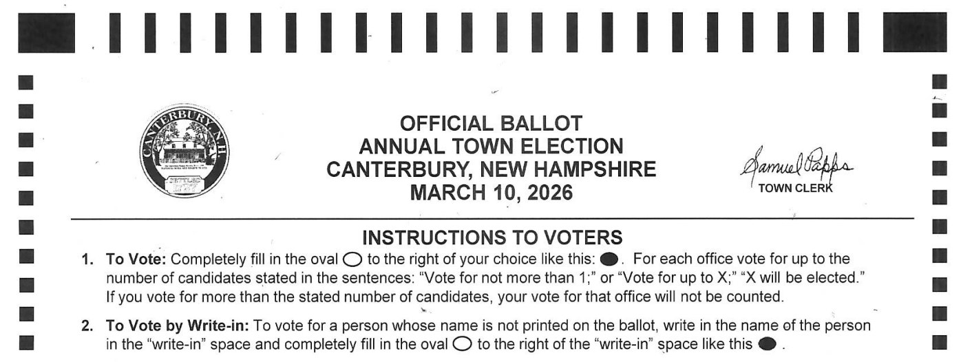 Check out the Sample Ballot Here! Take a look to see who is running and what warrant articles will be on the ballot for the First Session. See below for a write-up from the Canterbury Planning Board on these articles.